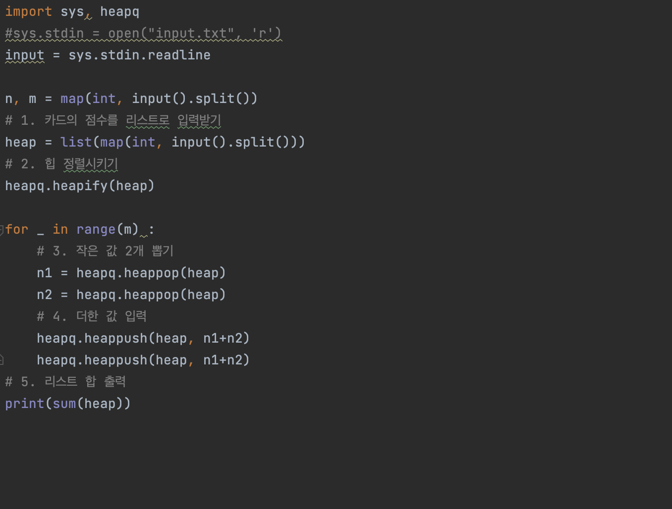 15903번: 카드 합체 놀이