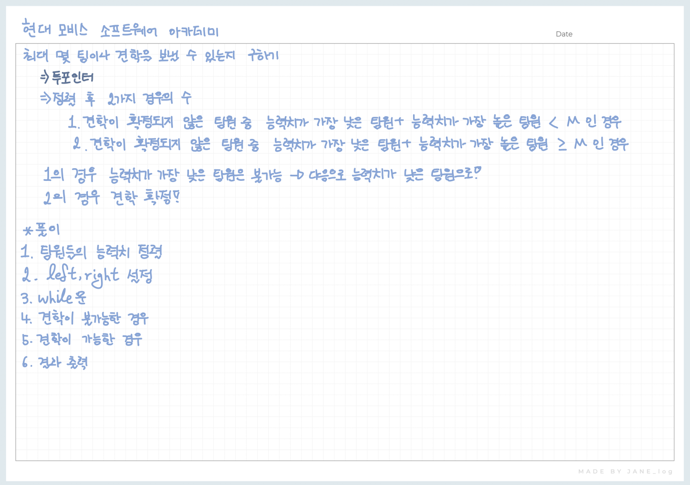 현대모비스에서 소프트웨어 아카데미 견학생을 모집한다고 한다. 이번 견학 활동은 모두 팀 단위로 진행되며 아래 두 조건을 모두 만족하는 팀만 소프트웨어 아카데미를 견학할 수 있다.