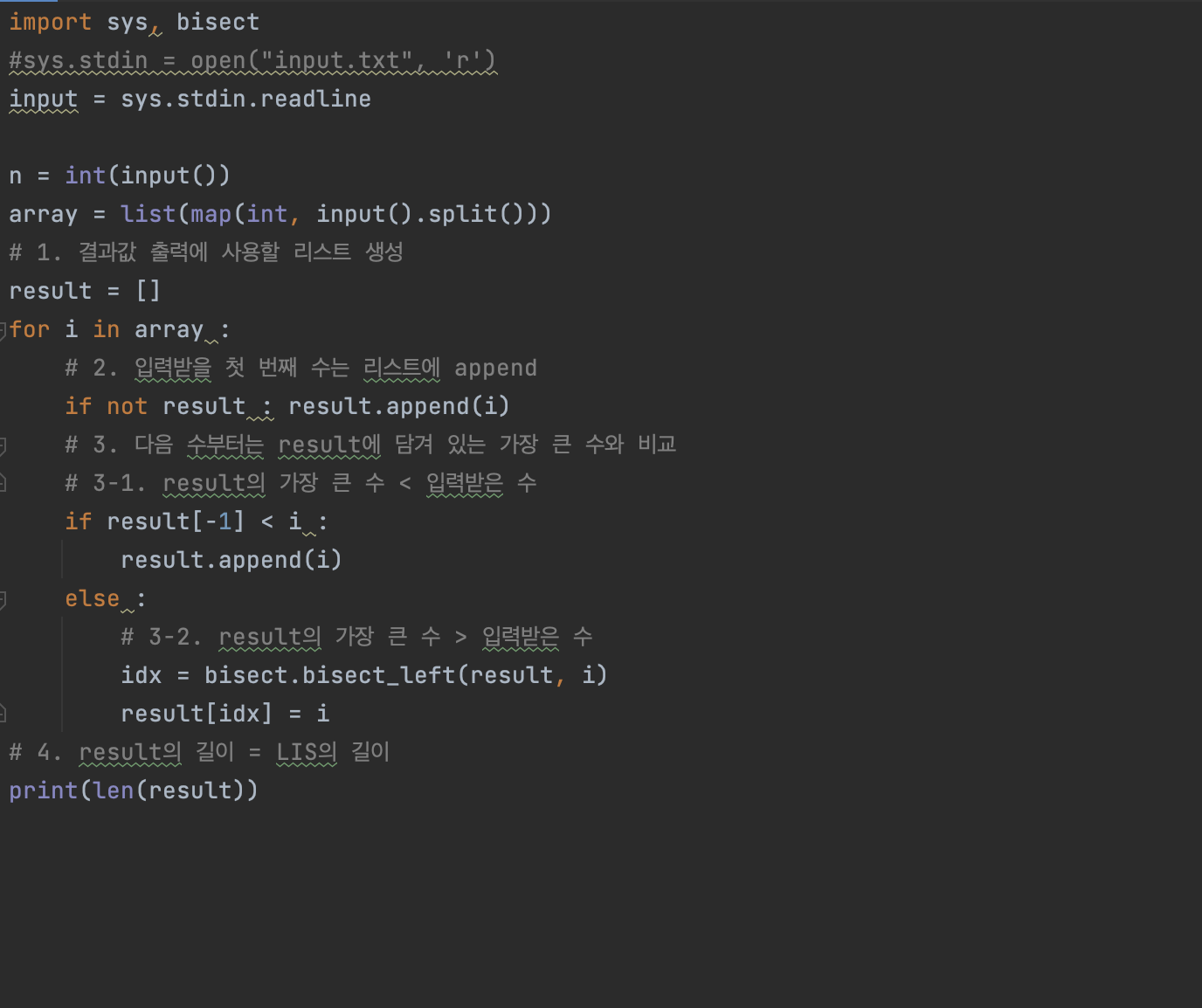 첫째 줄에 수열 A의 가장 긴 증가하는 부분 수열의 길이를 출력한다.