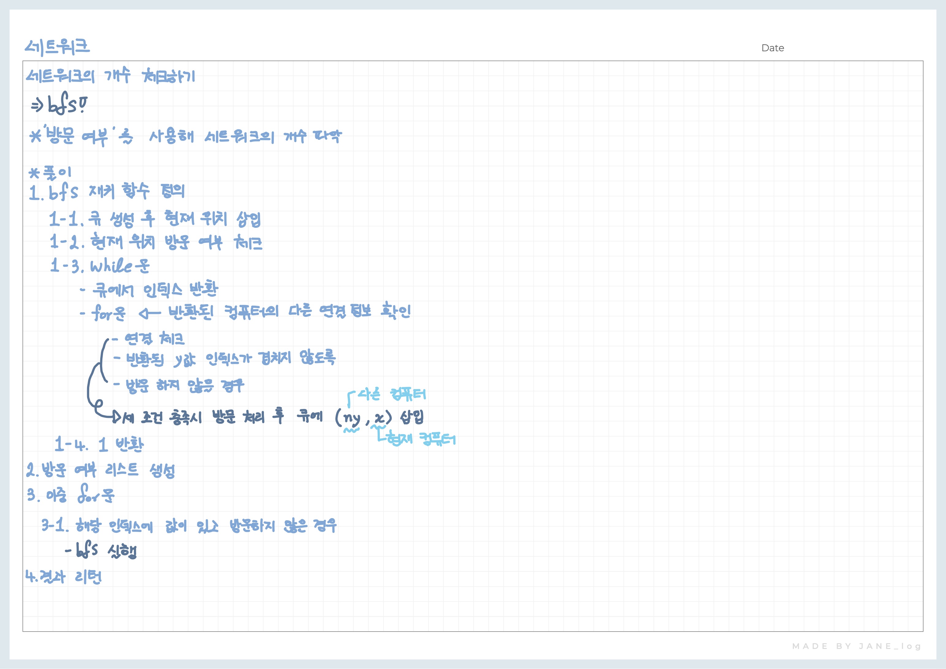 컴퓨터의 개수 n, 연결에 대한 정보가 담긴 2차원 배열 computers가 매개변수로 주어질 때, 네트워크의 개수를 return 하도록 solution 함수를 작성하시오.