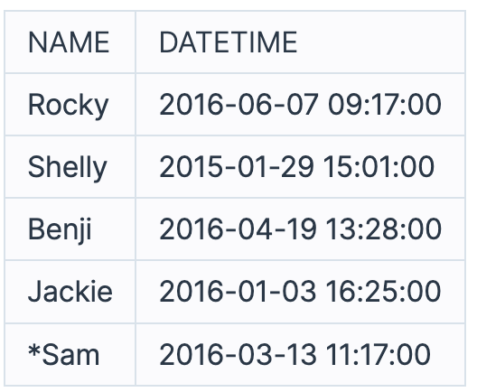 동물 보호소에 들어온 모든 동물의 이름과 보호 시작일을 조회하는 SQL문을 작성해주세요. 이때 결과는 ANIMAL_ID 역순으로 보여주세요. SQL을 실행하면 다음과 같이 출력되어야 합니다.