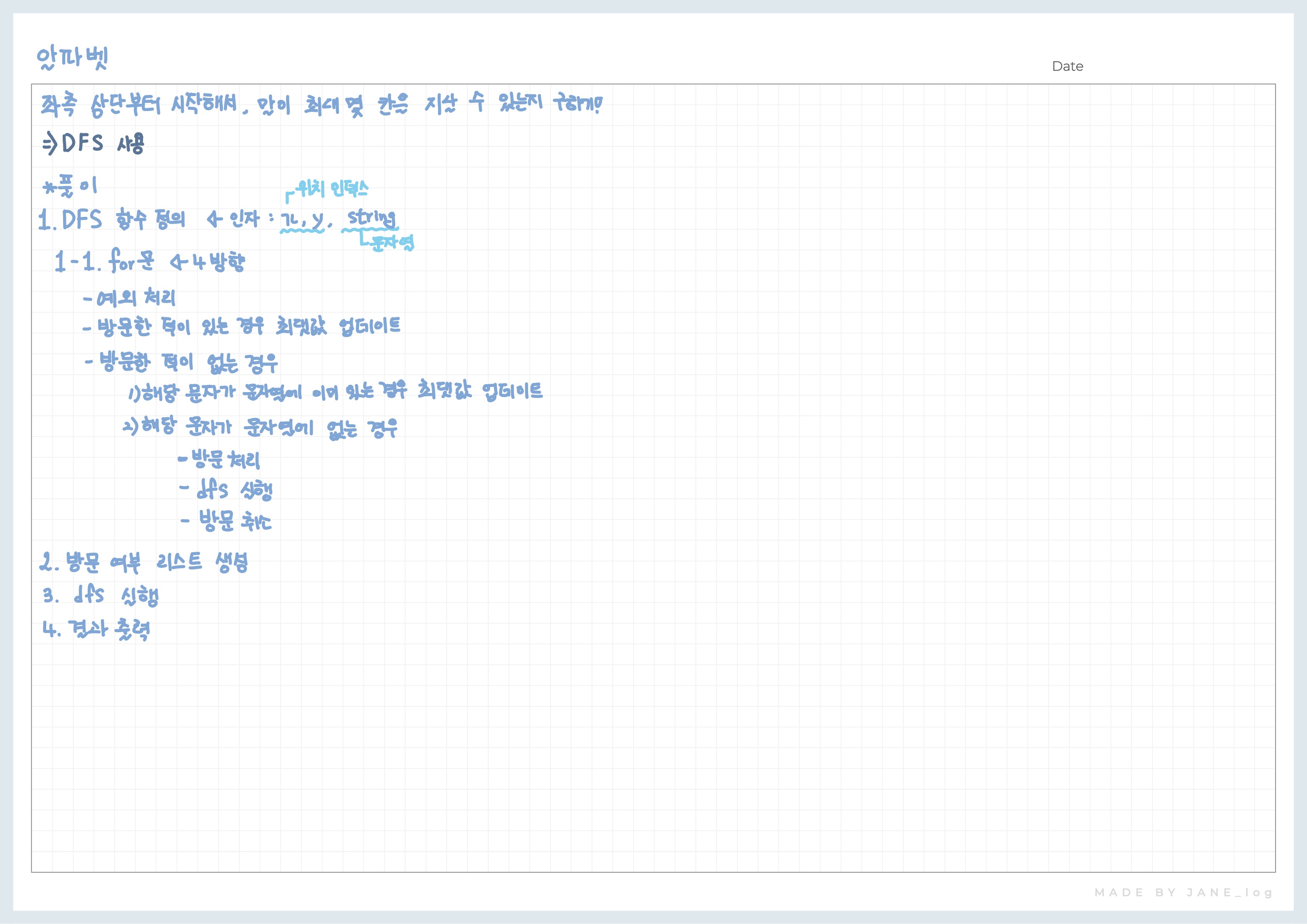 첫째 줄에 R과 C가 빈칸을 사이에 두고 주어진다. (1 ≤ R,C ≤ 20) 둘째 줄부터 R개의 줄에 걸쳐서 보드에 적혀 있는 C개의 대문자 알파벳들이 빈칸 없이 주어진다.