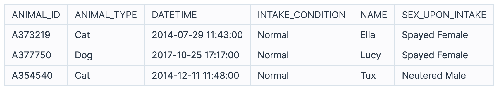 예를 들어 ANIMAL_INS 테이블이 다음과 같다면