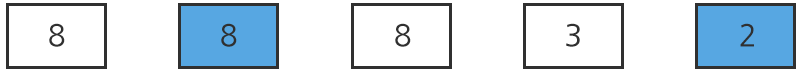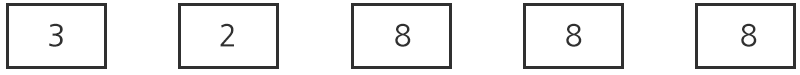 예를 들어, 다음 그림과 3, 2, 8, 8, 8 의 5개의 숫자판들이 주어지고 교환 횟수는 2회라고 하자.