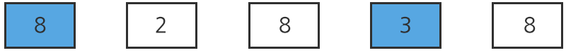 처음에는 첫번째 숫자판의 3과 네 번째 숫자판의 8을 교환해서 8, 2, 8, 3, 8이 되었다.