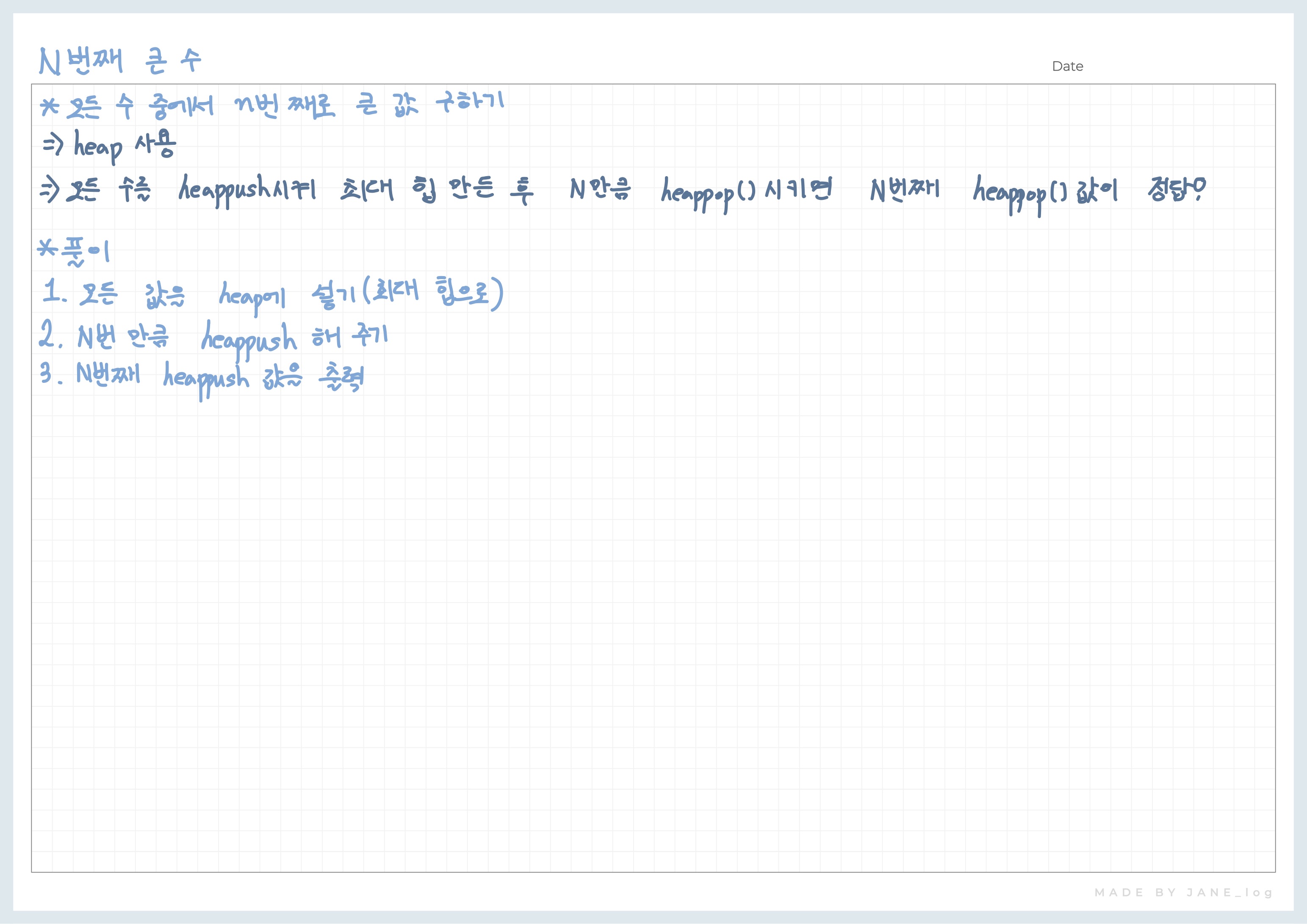 이러한 표가 주어졌을 때, N번째 큰 수를 찾는 프로그램을 작성하시오. 표에 채워진 수는 모두 다르다.