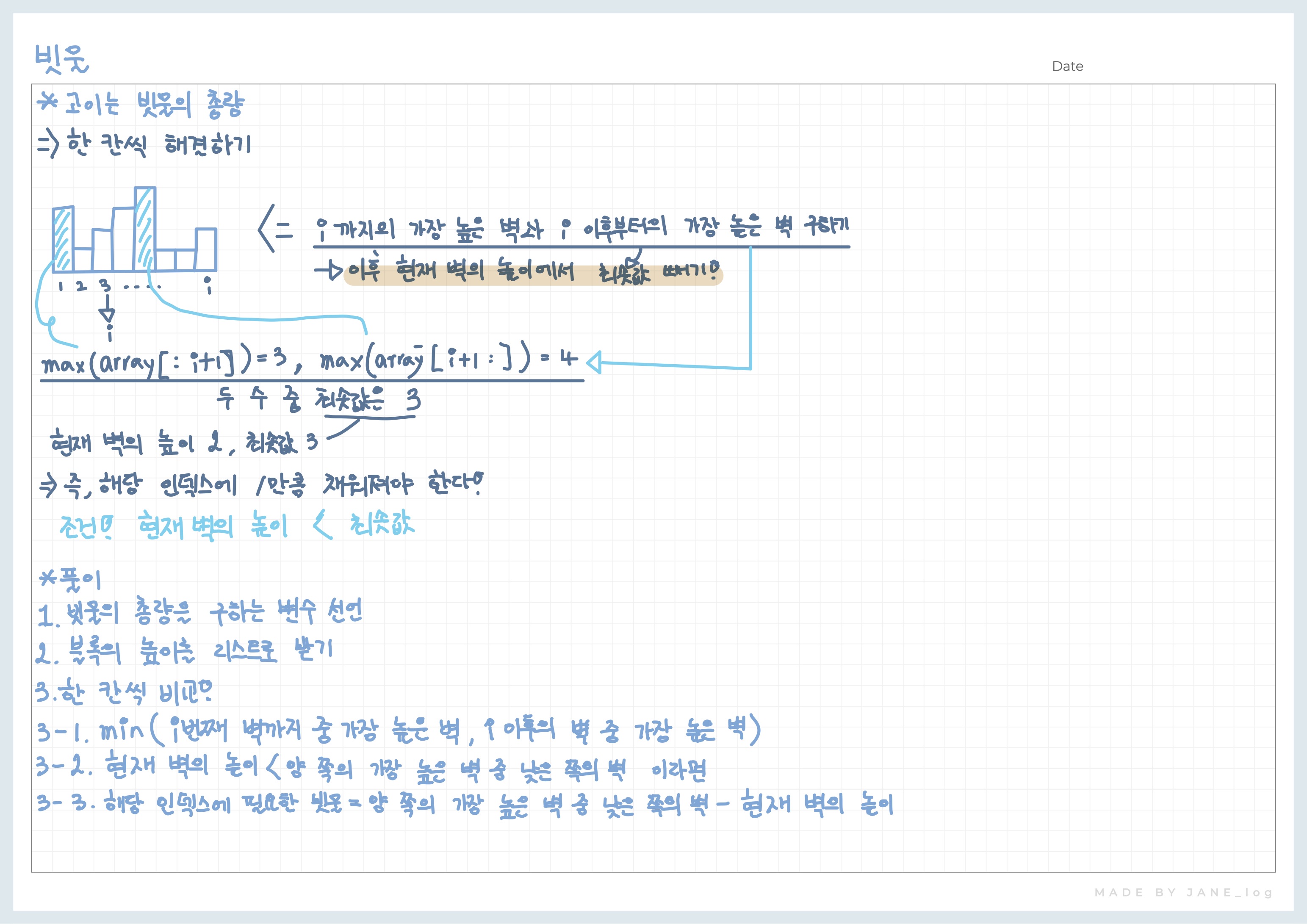 2차원 세계에 블록이 쌓여있다. 비가 오면 블록 사이에 빗물이 고인다.