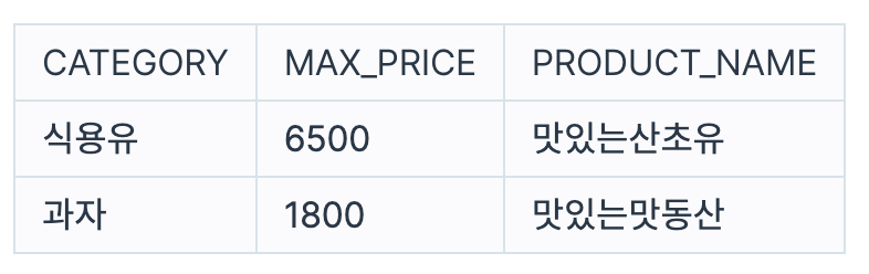 FOOD_PRODUCT 테이블이 다음과 같을 때