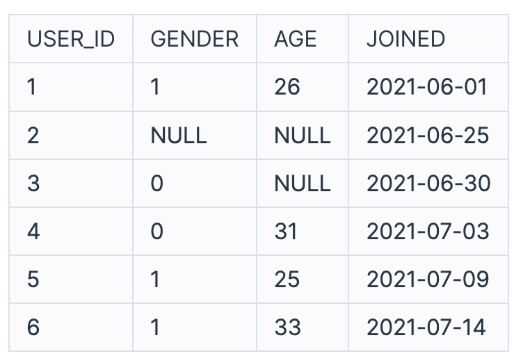 GENDER 컬럼은 비어있거나 0 또는 1의 값을 가지며 0인 경우 남자를, 1인 경우는 여자를 나타냅니다.