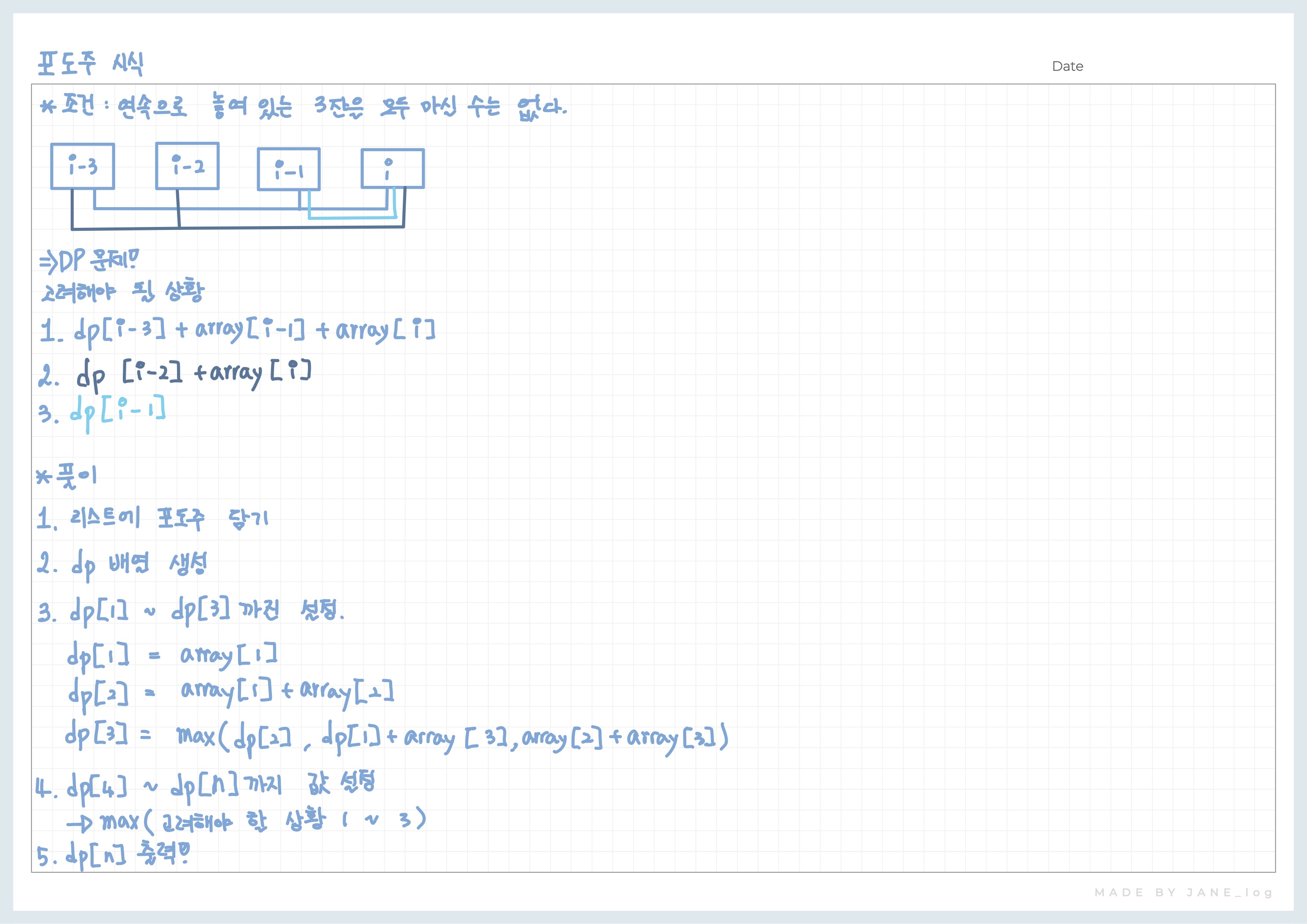 - 연속으로 놓여 있는 3잔을 모두 마실 수는 없다.