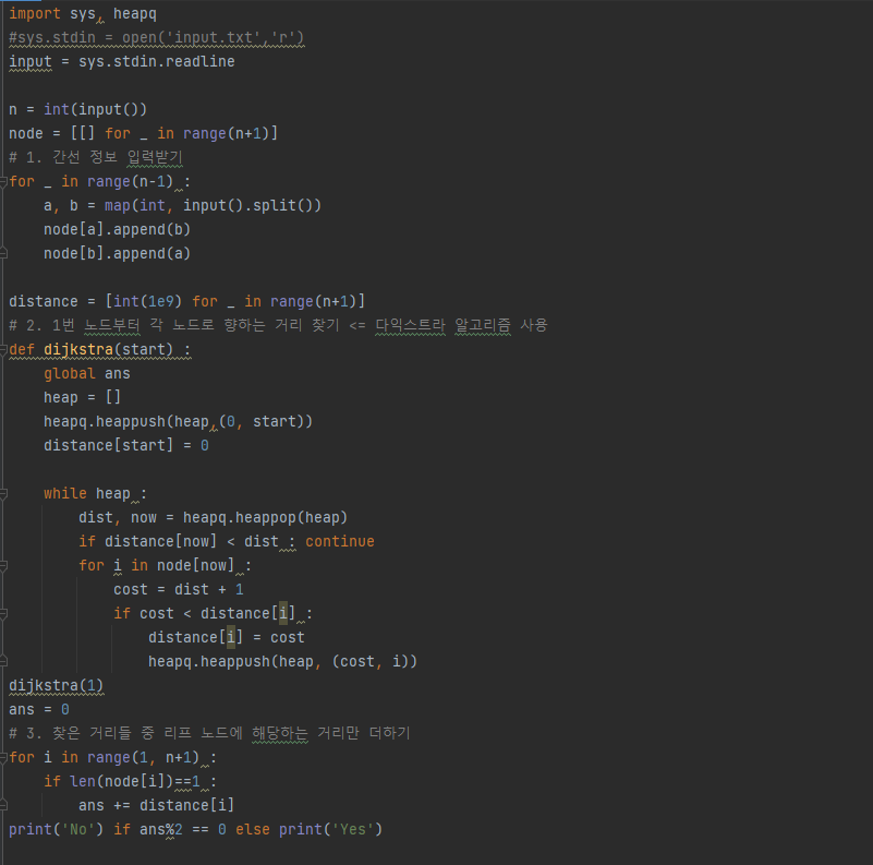 첫째 줄에 트리의 정점 개수 N(2 ≤ N ≤ 500,000)이 주어진다.