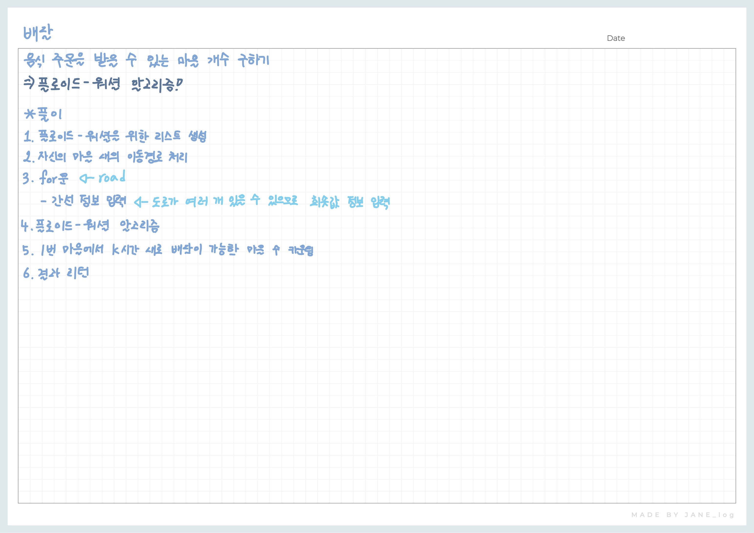 # 5. 1번 마을에서 K시간 내로 배달이 가능한 마을 수 카운팅