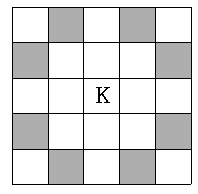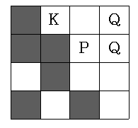 예를 들어 다음과 같이 말이 배치가 되어 있다면 진하게 표시된 부분이 안전한 칸이 될 것이다. (K : Knight, Q : Queen, P : Pawn)