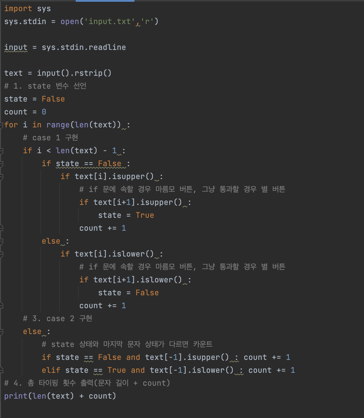 민겸이가 해당 문자열을 입력하기 위해 버튼을 최소 몇 번 눌러야 하는지 출력한다.