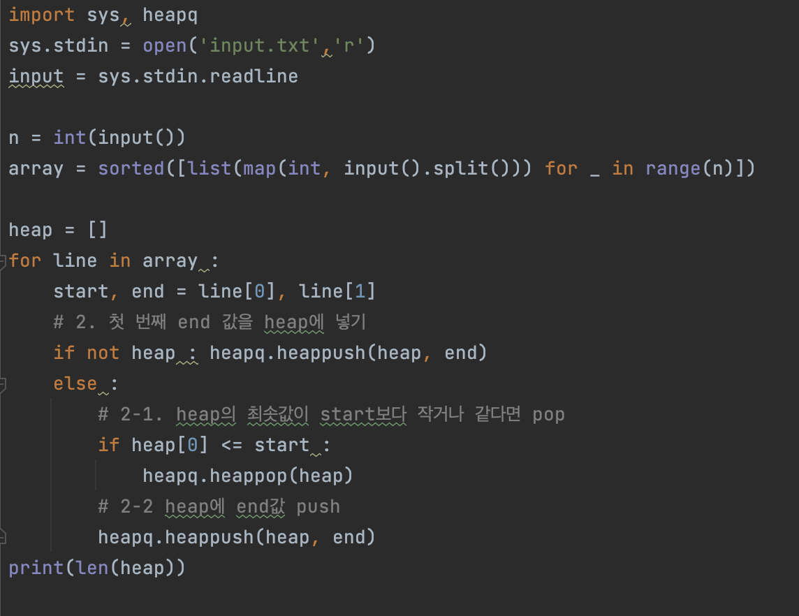 김종혜 선생님한테는 Si에 시작해서 Ti에 끝나는 N개의 수업이 주어지는데, 최소의 강의실을 사용해서 모든 수업을 가능하게 해야 한다.