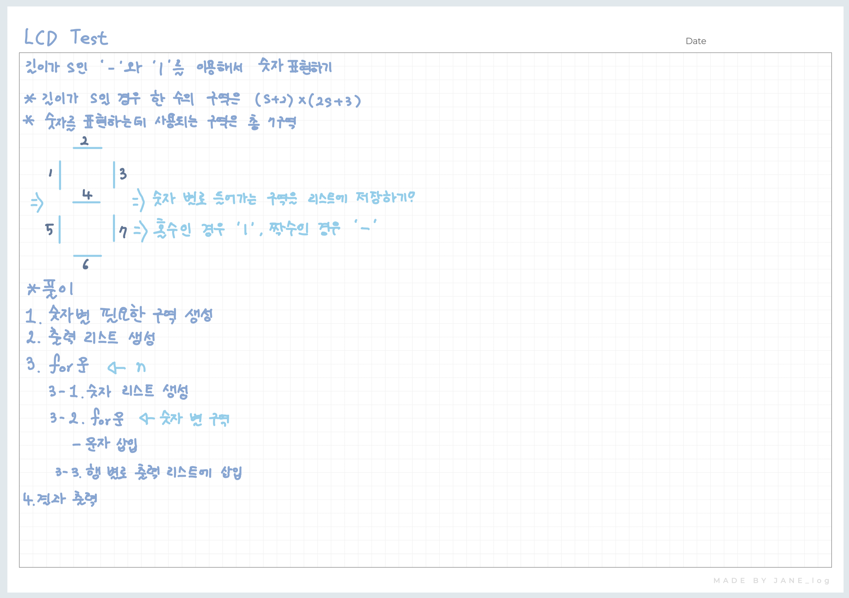 지민이는 새로운 컴퓨터를 샀다. 하지만 새로운 컴퓨터에 사은품으로 온 LC-디스플레이 모니터가 잘 안나오는 것이다. 지민이의 친한 친구인 지환이는 지민이의 새로운 모니터를 위해 테스트 할 수 있는 프로그램을 만들기로 하였다.