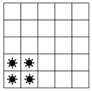 초기 특수 영양제는 n x n 격자의 좌하단의 4개의 칸에 주어집니다.