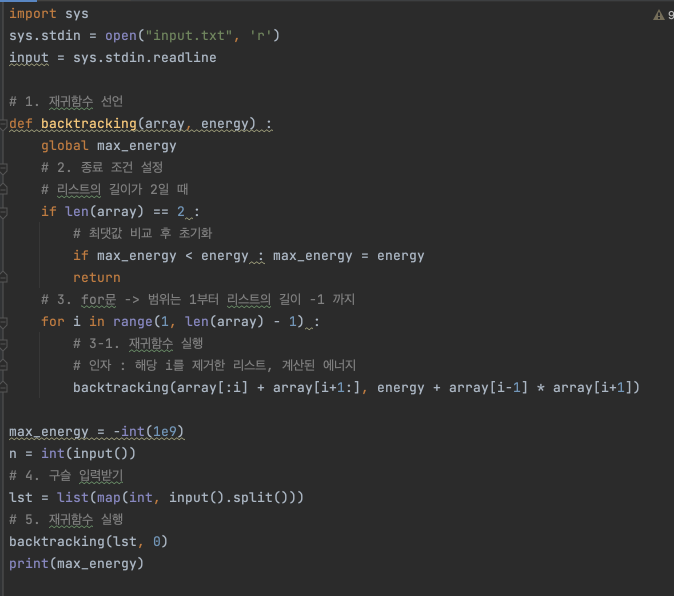 첫째 줄에 에너지 구슬의 개수 N(3 ≤ N ≤ 10)이 주어진다.