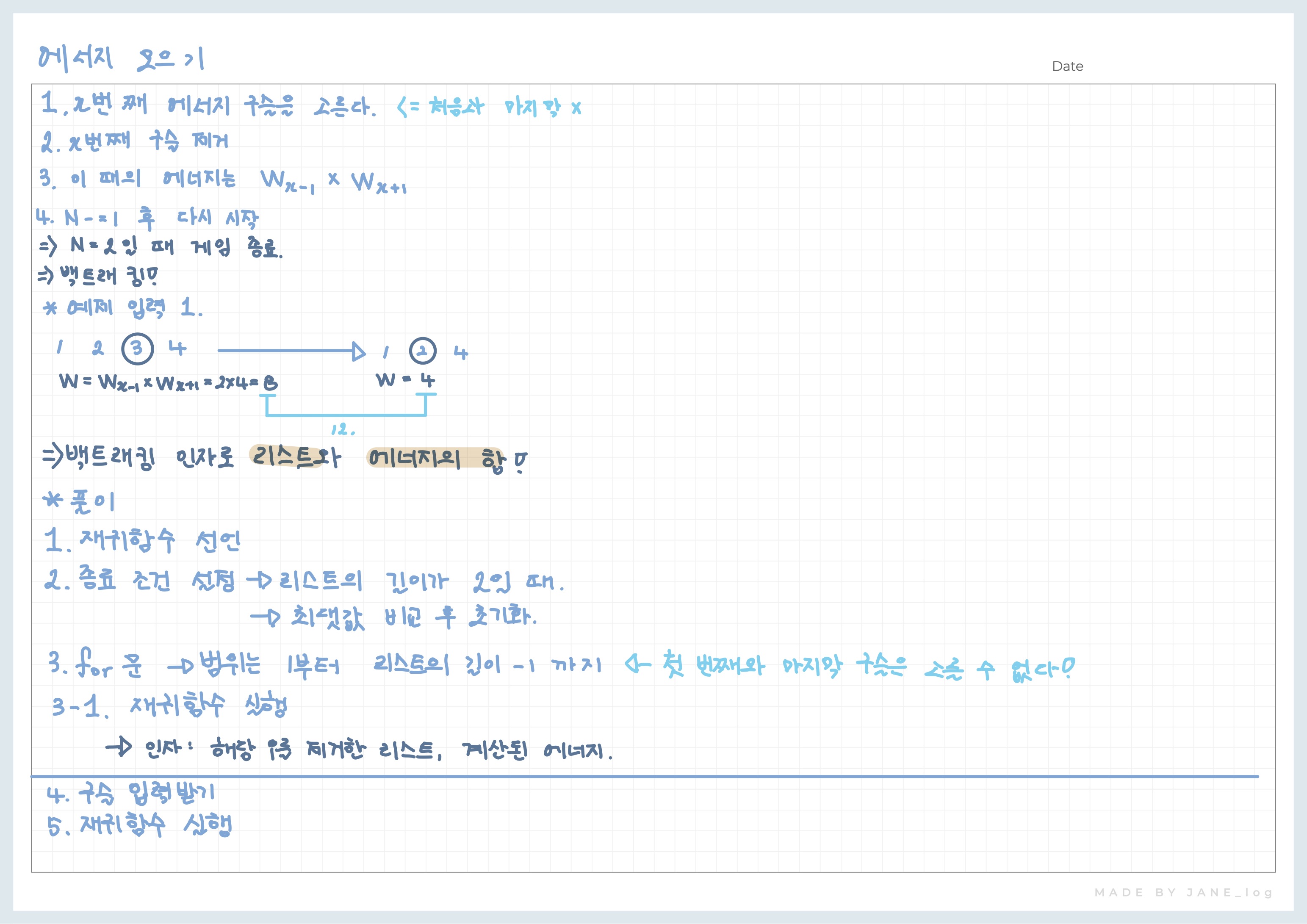 - N을 1 감소시키고, 에너지 구슬을 1번부터 N번까지로 다시 번호를 매긴다. 번호는 첫 구슬이 1번, 다음 구슬이 2번, ... 과 같이 매겨야 한다.