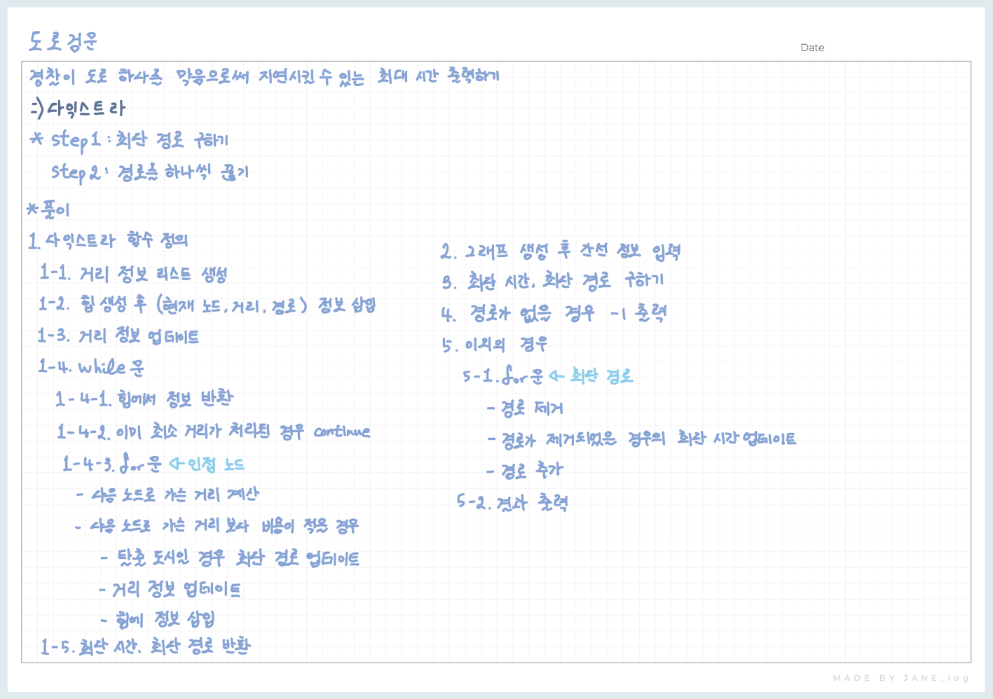 - 각 도시 지점 간을 이동하는 시간은 항상 양의 정수이다.