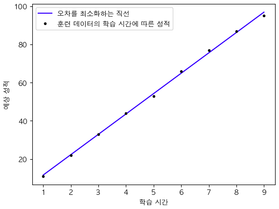 학습 이후 최종적으로 선택된 오차를 최소화하는 직선을 그래프로 그려보자.