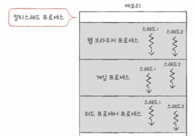 멀티 스레드 프로세스는 실행 흐름이 여러 개인 프로세스로써 프로세스를 이루는 여러 명령어를 동시에 실행할 수 있다.