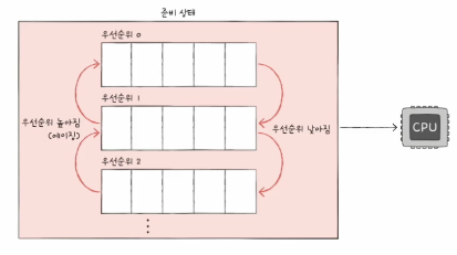 우선순위 별로 Ready Queue를 여러 개 사용하는 방식