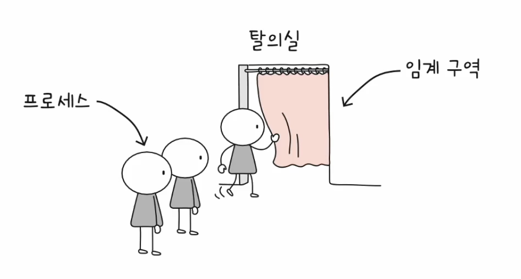 - 임계 구역에 진입하고자 한다면 진입한 프로세스 이외에는 대기해야 한다.