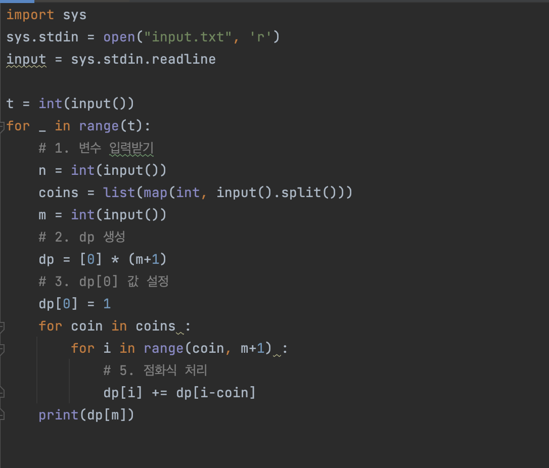 동전의 종류가 주어질 때에 주어진 금액을 만드는 모든 방법을 세는 프로그램을 작성하시오.