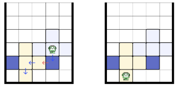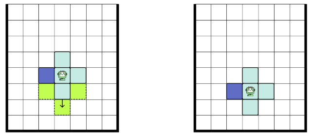 위 그림의 초록색 칸들이 비어있을 때에만 남쪽으로 내려갈 수 있습니다.