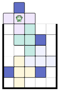 정령은 갈 수 있는 모든 칸 중 가장 남쪽의 칸으로 이동하고 이동을 환전히 종료합니다. 이때 정령의 위치가 해당 정령의 최종 위치가 됩니다. 아래 그림에서는 정령이 출구를 타고 6번째 행까지 이동이 가능합니다.