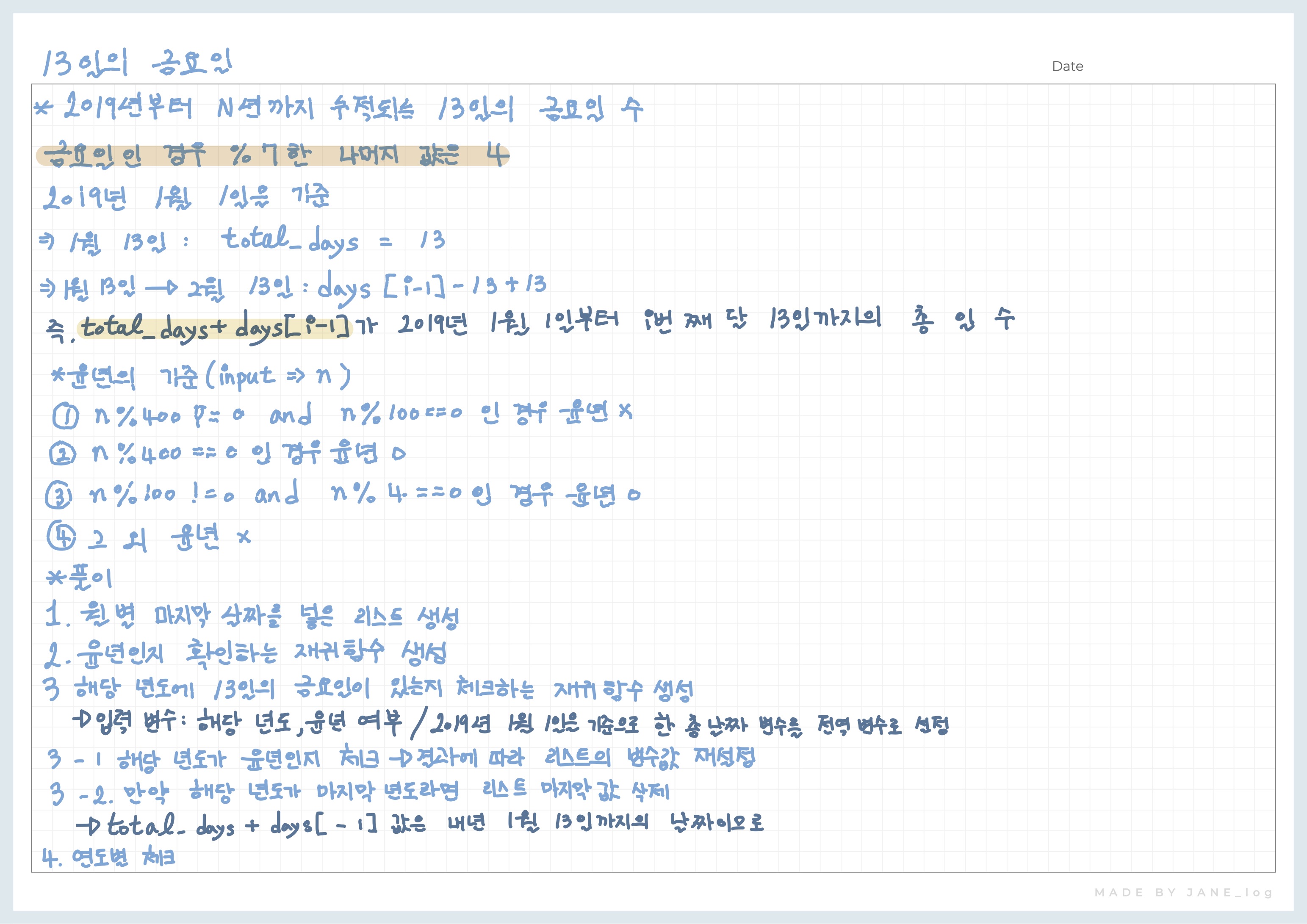 - 400의 배수 연도는 윤년이다.
