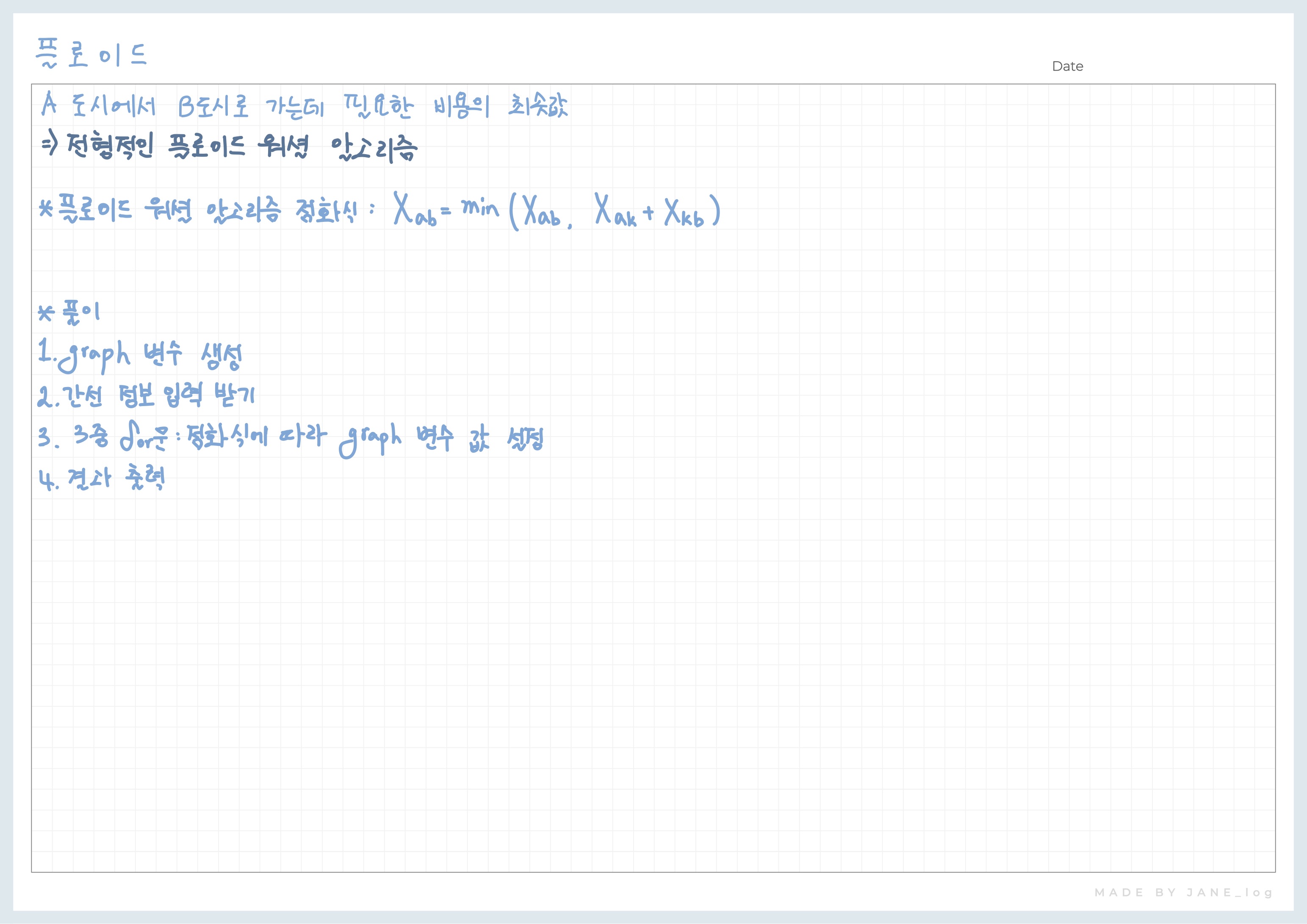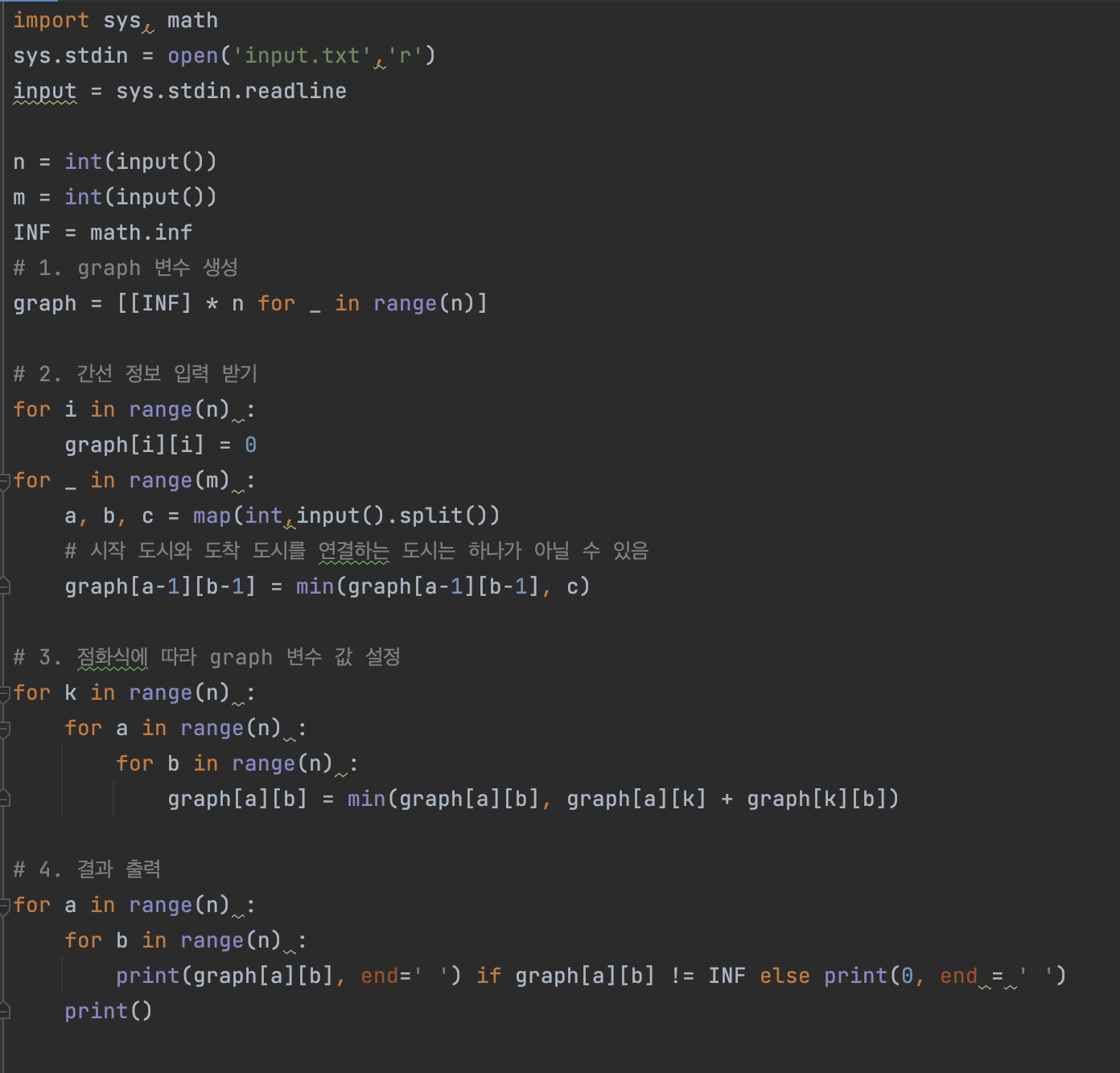 모든 도시의 쌍 (A, B)에 대해서 도시 A에서 B로 가는데 필요한 비용의 최솟값을 구하는 프로그램을 작성하시오.