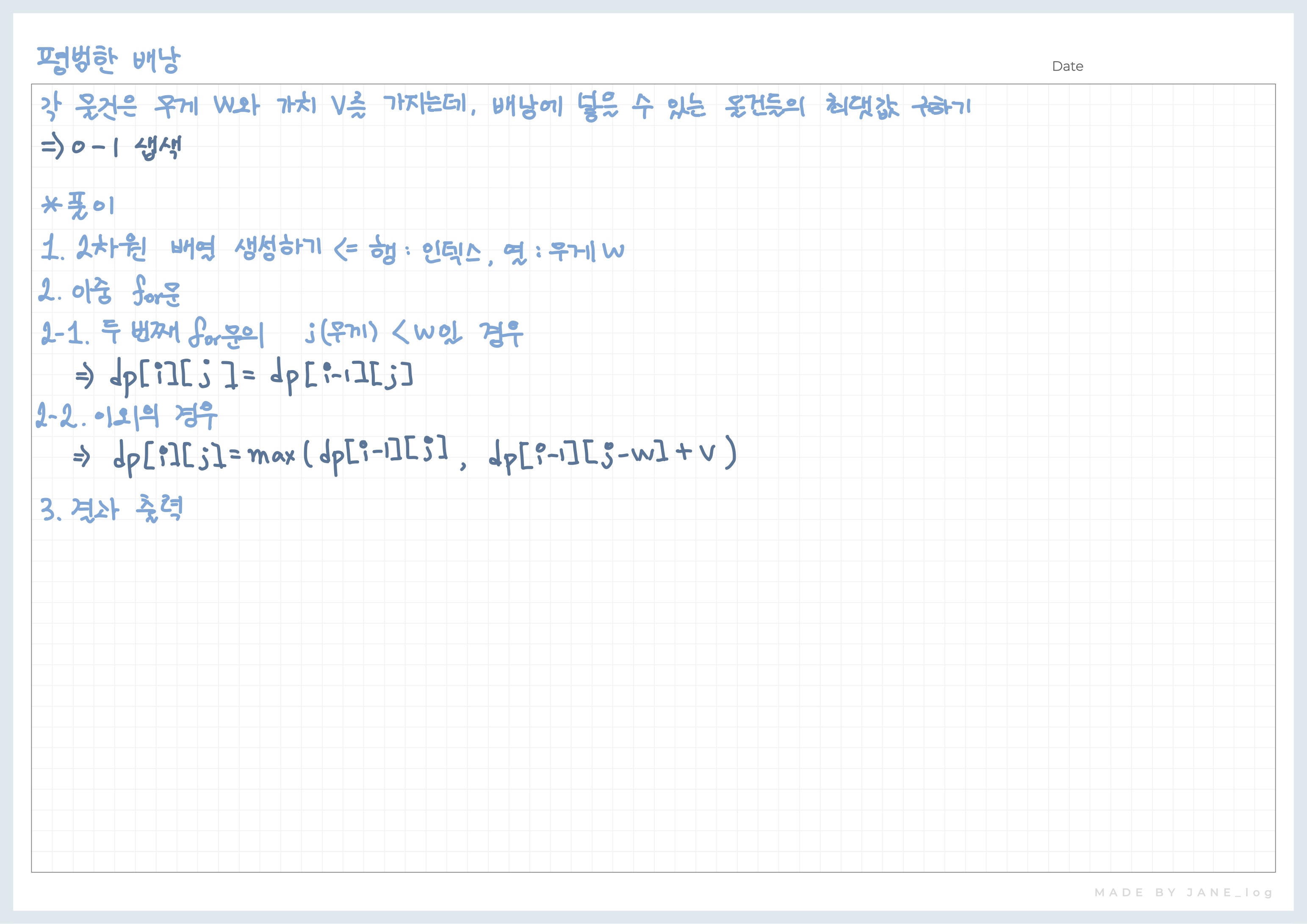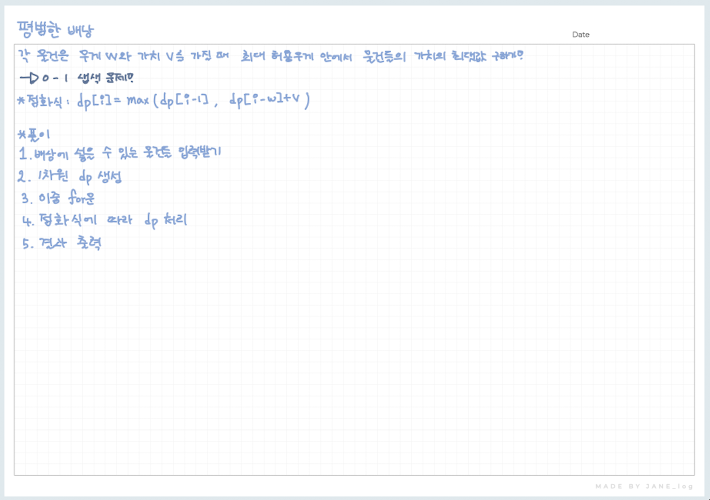 이 문제는 아주 평범한 배낭에 관한 문제이다.
