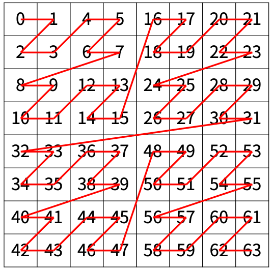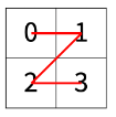 N > 1인 경우, 배열을 크기가 2N-1 × 2N-1로 4등분 한 후에 재귀적으로 순서대로 방문한다.