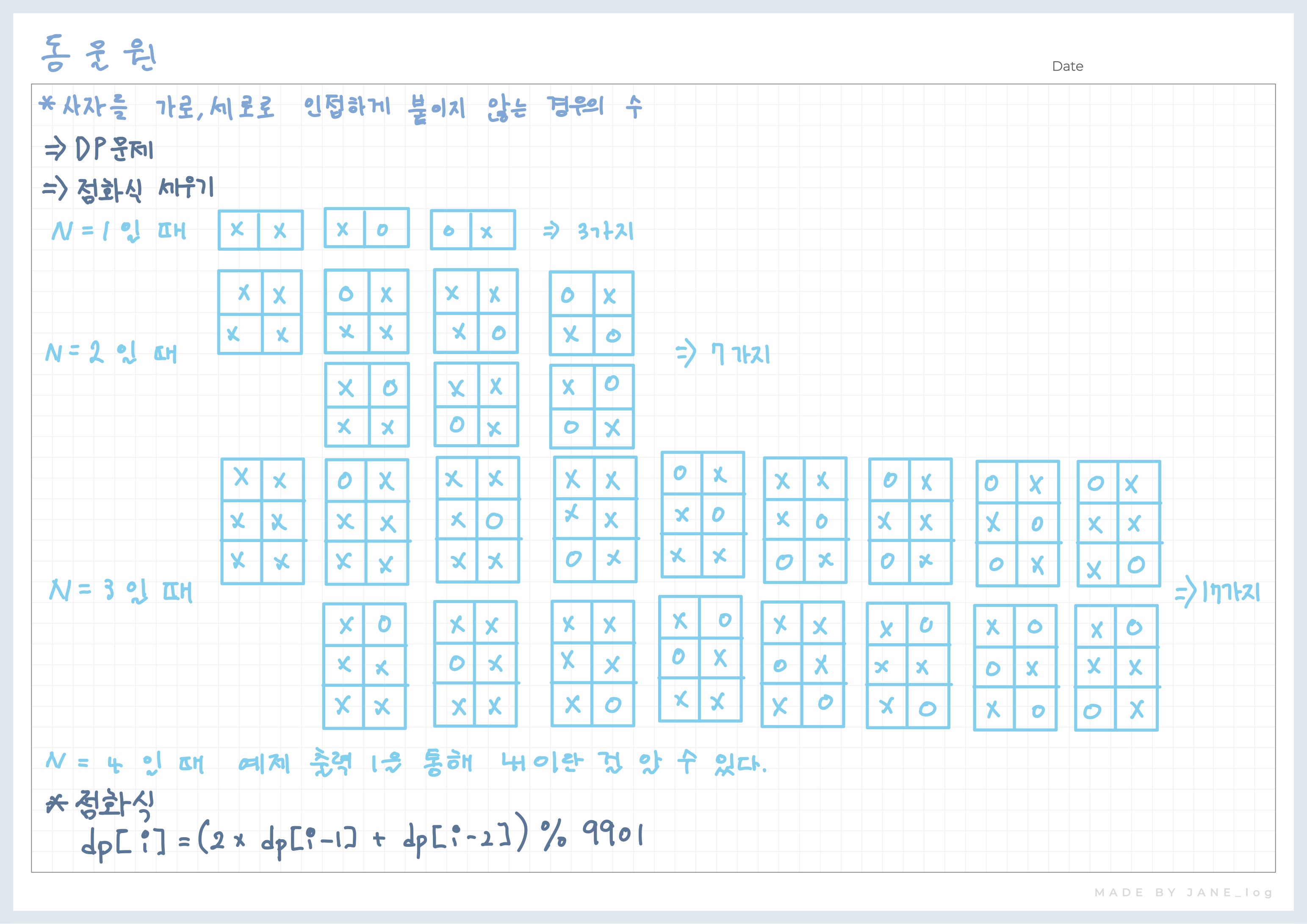 첫째 줄에 사자를 배치하는 경우의 수를 9901로 나눈 나머지를 출력하여라.
